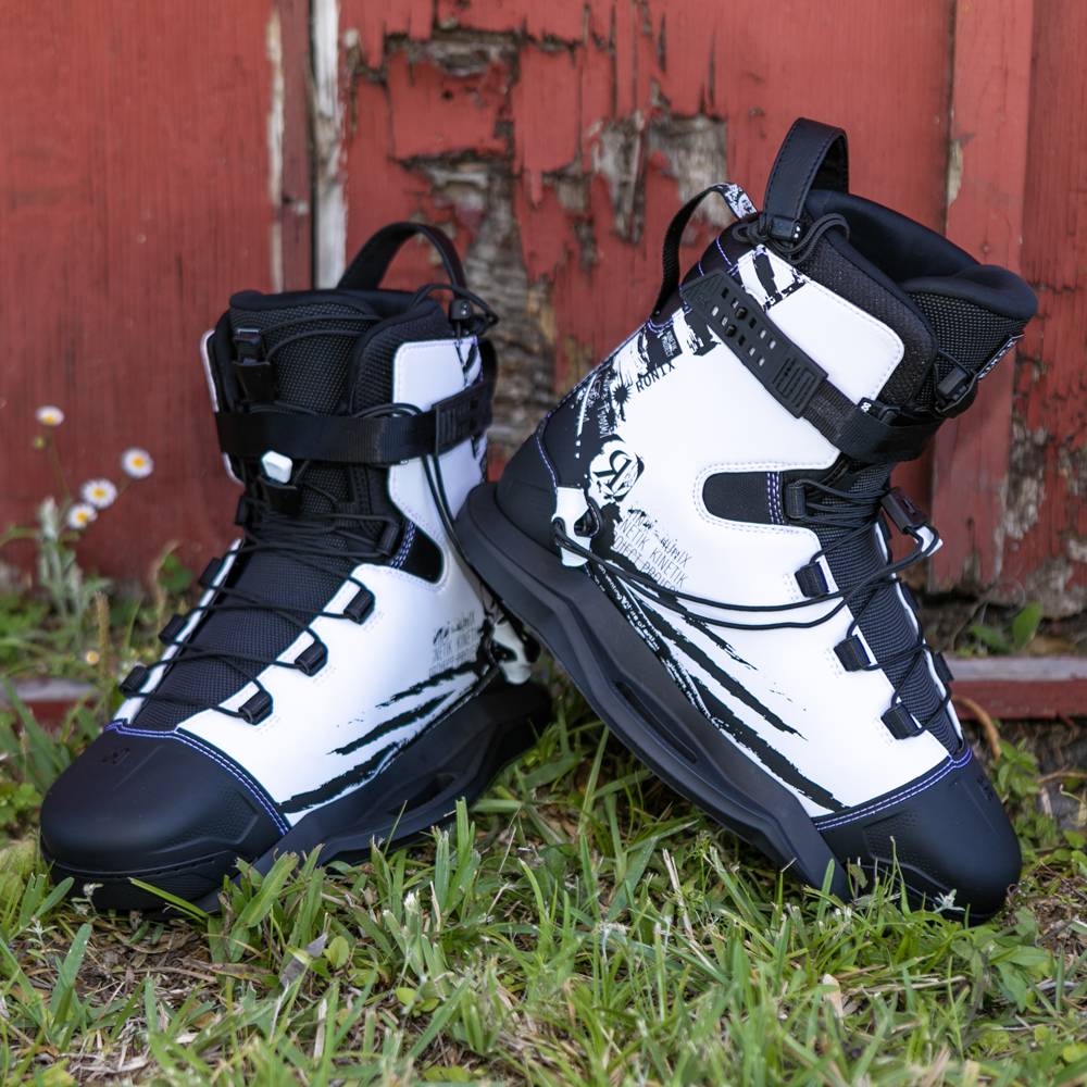 Gli attacchi da wakeboard Kinetik Project Ronix sono ideali per coloro che frequentano regolarmente il cablepark. Gli attacchi sono dotati di un liner walkable speciale. Ciò significa che la resistente scarpa esterna è dotata di una scarpa interna removibile. Con queste scarpe interne puoi camminare mantenendo la scarpa esterna attaccata alla tavola. Che tu sia caduto a metà percorso e devi tornare indietro a piedi o nuotando, o che tu stia facendo una visita al bar, puoi mantenere gli attacchi e portare la tavola sotto il braccio.